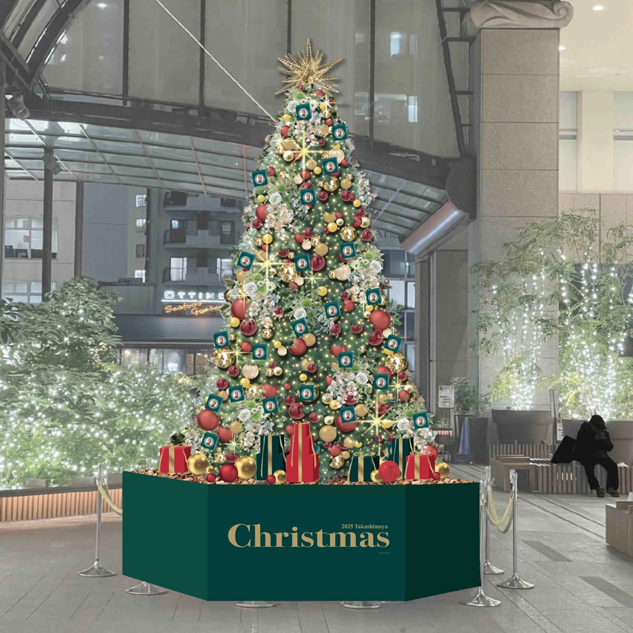 今年のタカシマヤのクリスマステーマは「Merry Magical Moments」です。2階JR口前の「光のガーデン」では、グリーンのシンボルツリーがまばゆい光でお客様をお迎えします。ツリーにはギフトボックス型のオーナメントがちりばめられ、クリスマスの非日常感をお楽しみいただけます。2階テラスデッキでは温かみのあるゴールドの光が歩道を華やかに照らします。魔法にかかったような空間や時間をぜひお楽しみください。